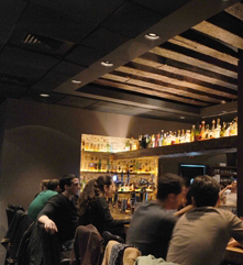 מקום המשדר חמימות והכנסת אורחים עם במה מוגבהת להופעות מוסיקה ומרחב תצוגה לתערוכות מתחלפות. מבנה: בר במרכז, הישיבה סביב בשני מעגלים. מעגל פנימי: ישיבה סביב הבר. מעגל חיצוני: ישיבת חצי בר על כסאות וספות הנצמדות למעטפת הפנימית של החלל. המעטפת הפנימית: תומכת את המעגלים ומשנה טקסטורות. מישורים קרובים: צביעה עם טקסטורה של טיח עדין. מישורים רחוקים: חיפוי לבנים. פלטת הגוונים זורמת בגוונים של סגול חציל, אפור וחום ומשאירה את הצבעוניות למשקאות ולעבודות האמנות התלויות על הקירות. הבר: קיר משקאות עם מדפים מעץ אדני רכבת, קורת דיספליי מאדני רכבת הנמתחת קיר הדיספליי ועמוד קונסטרוקטיבי בבר והבר עצמו עשוי מאלון פראי. תאורה: הארת קירות הלבנים, תצוגת המשקאות, ותאורה אינטימית ליושבים.